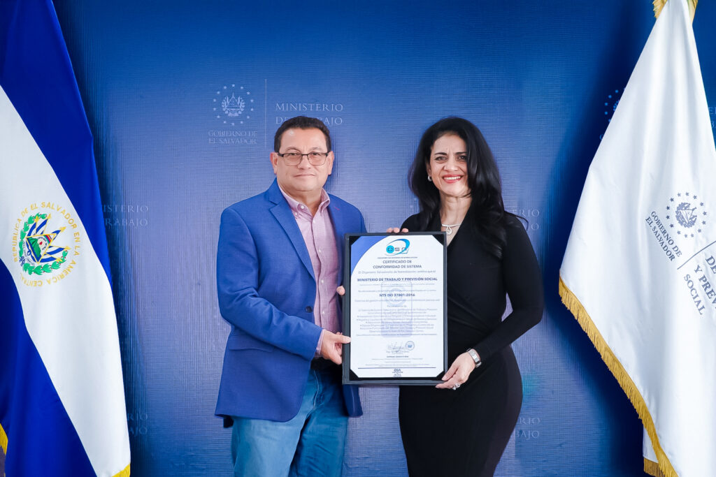 El Organismo Salvadoreño de Normalización (OSN) otorgó la certificación internacional ISO 37001:2016 al Ministerio de Trabajo y Previsión Social de El Salvador (MTPS), reconocimiento que avala la implementación de un Sistema de Gestión Antisoborno (SGAS) en la institución y reafirma su compromiso con la transparencia, la ética institucional y el cumplimiento normativo.